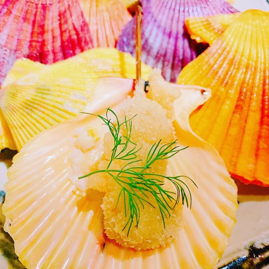 新鮮な生のサザエを使用し、肝も一緒に串揚げにしております。一口食べると磯の香りが口に広がり、お酒が進む逸品です!仕入れにより売り切れの場合があります。