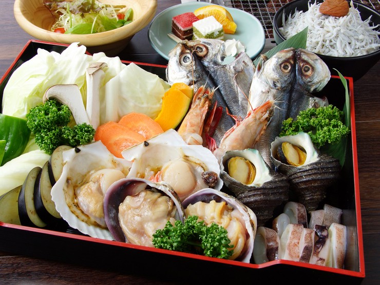 加太温泉の老舗旅館である【シーサイドホテル加太海月】がプロデュースする【海鮮浜焼きレストラン カダテラス】。店内は全面テラス席で、海を望む絶好のロケーションの中、心地よい風を感じながら食事が楽しめます。天気の良い日や夕日の見える時間帯は、また格別な雰囲気。和歌山の海でとれる新鮮な魚介たっぷりの『浜焼き海鮮セット』と、ボリューム満点、食べ応えのある『焼肉BBQセット』の2つが用意されており、好みで選ぶことができます。ファミリーや友人同士、デートはもちろん、和歌山への旅行や海水浴などで訪れた際にもおすすめできるお店です。