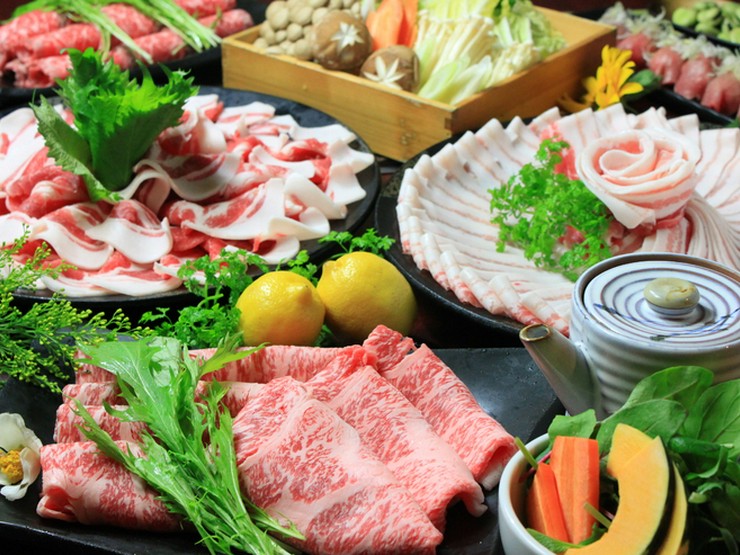 A5黒毛和牛と六白黒豚を贅沢に使った『しゃぶしゃぶ』