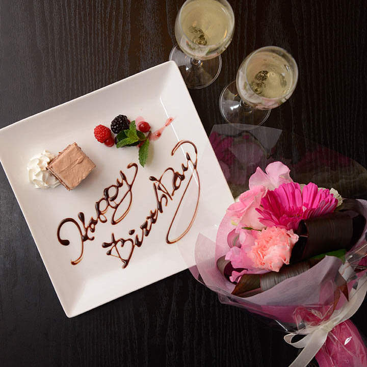 記念日誕生日に、メッセージプレートでおもてなしにおすすめのコースです。