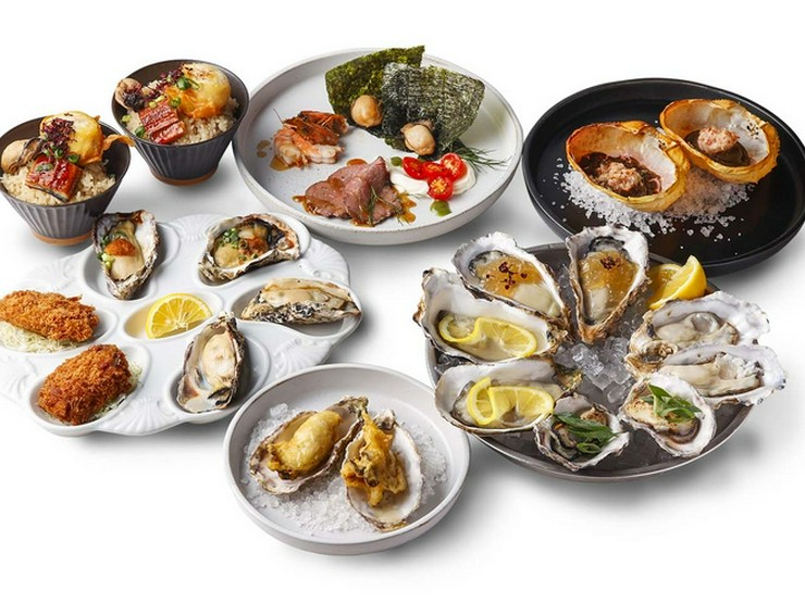 (素焼き、ウニと牡蠣醤油焼き、カキフライ)