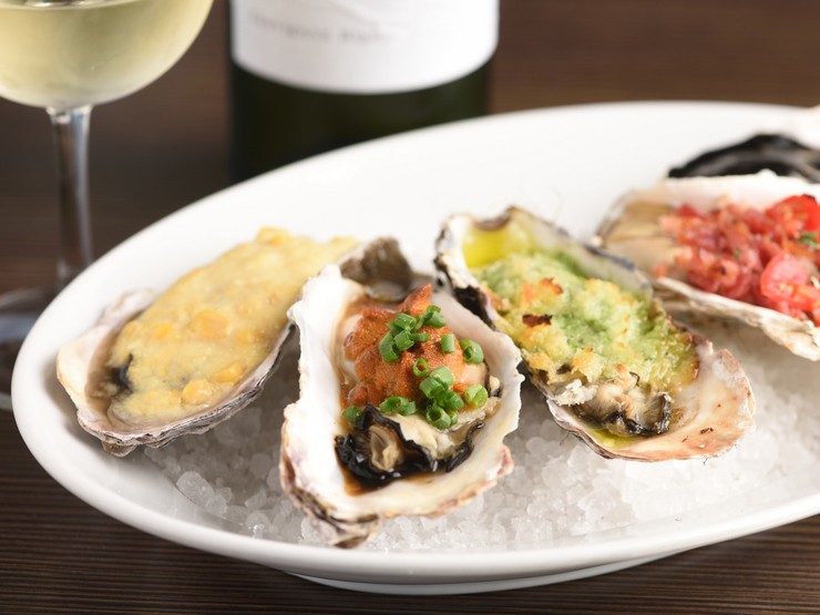 北海道仙鳳趾産、岩手県大槌産、米国産ピュージェットサウンドなど、世界各地から厳選した生牡蠣をご用意。それぞれの牡蠣に合わせたソースで味わっていただける『焼き牡蠣5種盛り合わせ』がおすすめです。