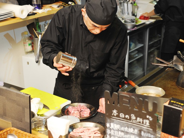豊富な経験を活かした素材選びと鉄板さばきで来店客を魅了