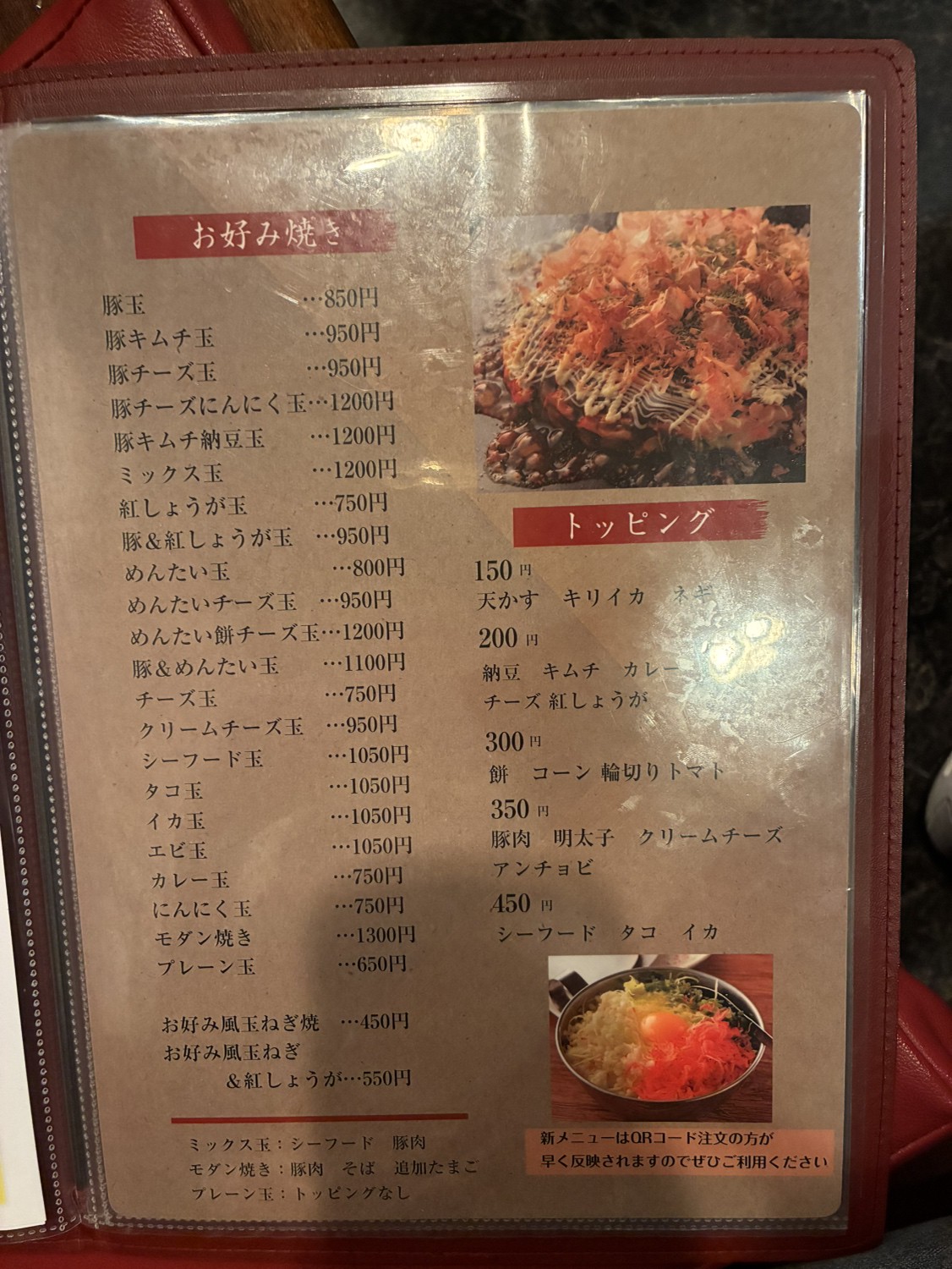 店長が試行を重ねてたどり着いた『モダン焼き』は、そばと豚肉が入った本格お好み焼き。決め手は、秘伝のレシピでブレンドしたソースです。マヨネーズをお好みでかければ、濃厚な味が口の中に広がります。