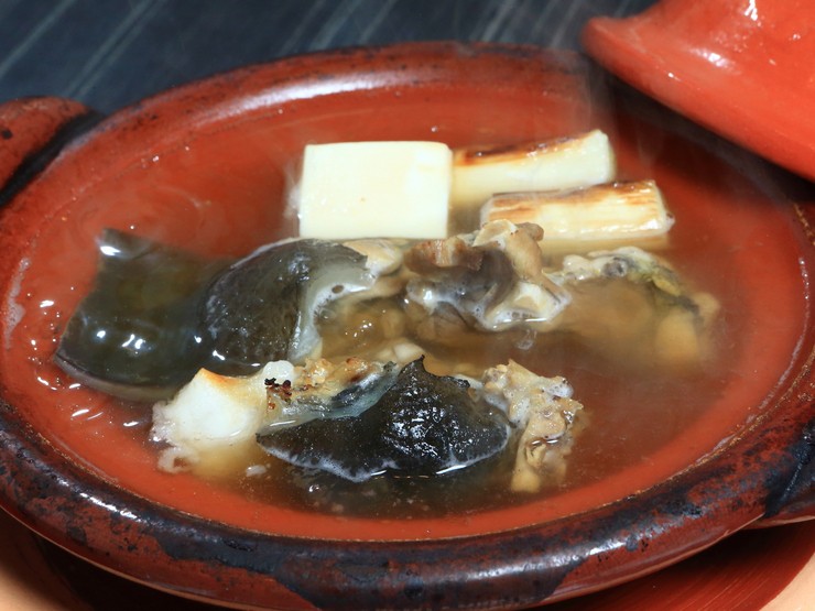 身はコリコリ、澄んだスープには旨味と栄養が凝縮した『丸鍋』