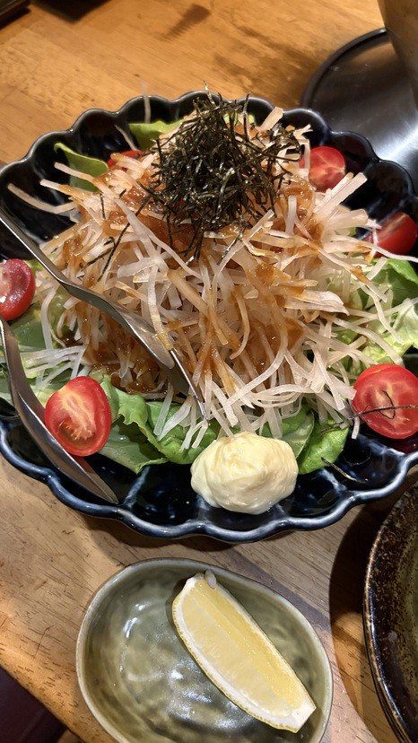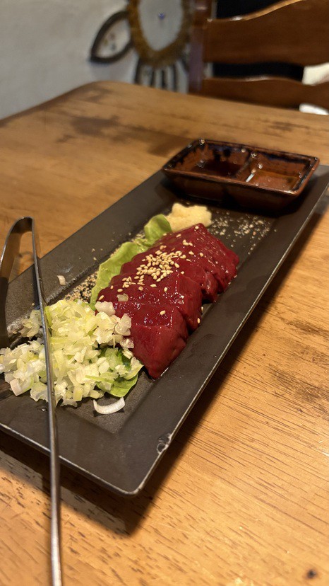 ウデのロース肉を厚切りして一口大でご提供。あっさりした肉質の部位なので、表面をカリッと焼いて、塩・こしょうでおつまみ感覚で食べるのがおすすめ。好みのお酒と合わせて、一皿目にぜひどうぞ。