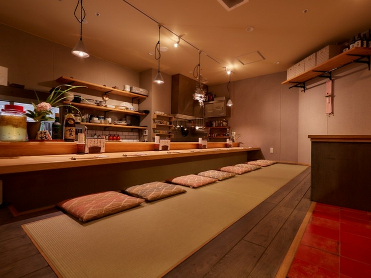 心斎橋駅徒歩3分、都会の喧噪を離れてゆったりと過ごせる穏やかな佇まいの【東心斎橋 宙】。旬の食材の魅力を活かしたおばんざいや創作和食を全国の地酒と共に楽しめるお店です。熊本直送の有機野菜をはじめ、毎日天満市場で仕入れる全国各地で旬を迎える厳選食材を素材の美味しさを引き出す調理法で仕上げています。心地よい接客も魅力のひとつです。掘りごたつの無垢材カウンター、畳と座布団は落ち着き度MAX。デートや飲み会にも最適、仕事帰りにふらりと訪れたくなる一軒です。