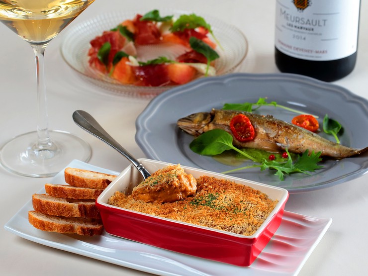 旬食材で織りなすイタリアンやフレンチベースの創作料理も多数。『季節のフルーツと生ハムとモッツァレラのサラダ仕立て』『鮎のコンフィ』『タカエビのアメリケーヌソースのグラタン』など季節ごとの味覚も愉しみ!