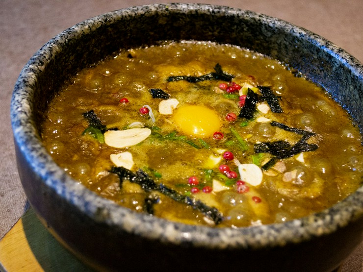 甘辛い牛すじが絶品『石鍋カレーうどん(ぼっかけ)』