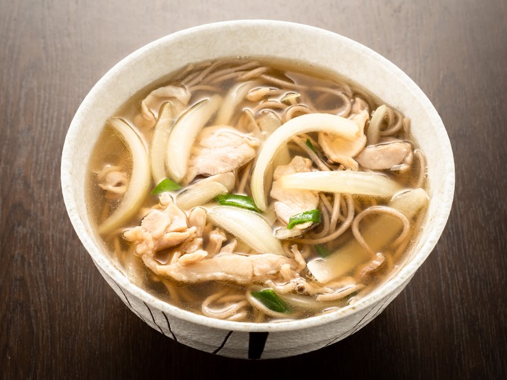 若鶏のスライス肉と玉ねぎをオーダーが入ってから特製の出汁と一緒に煮込んでいきます。透明感のある出汁は、鶏の旨みが加わることで深みのある味わいへと変化。玉ねぎのシャキシャキ感も楽しめるメニューです。