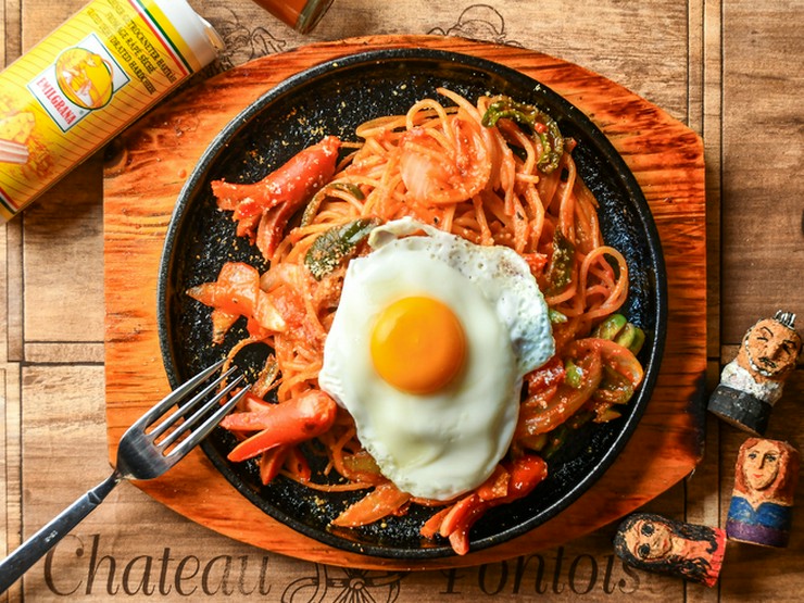 ゲストの8割が注文するという、店一番の人気メニュー。ジュージュー&熱々のまま提供されるので、シズル感もたっぷり。味わいはどこか懐かしく、タコさんウインナーで遊び心も演出しています。