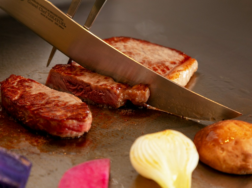 脂がたっぷり乗った最高ランクの山形牛に舌鼓。ラグジュアリーな鉄板焼き店