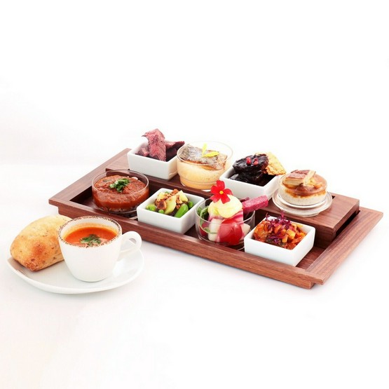 肉、魚、野菜をバランス良くを盛り合わせた贅沢なプレートです。8種の盛合せとなっていて、2種はお好みでチョイスしていただけます。前菜からメインまでを一つのプレートでご堪能いただける内容に仕上げています。