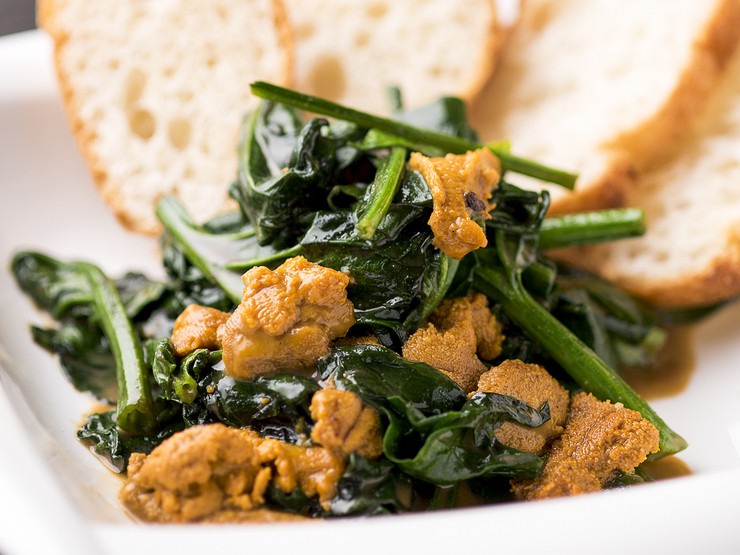 食材の絶妙なハーモニーを味わう『ホウレン草の地物うにバター バケット付き』