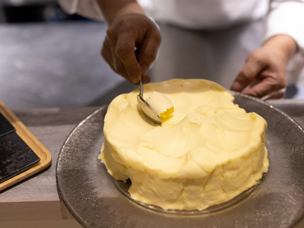 サワラは鮮度にこだわり産地直送。レカン時代に使うことのなかった、一般的な食材も高良シェフの技により魅力的なフランス料理へ変化を遂げます。ふわっと柔らかく且つしっとりと仕上げられキャビアとの相性も良い。