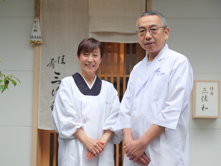 1962年、東京都生まれ。幼い頃より先代店主である父の背中を見ながら成長。長男であったため、跡を継ぐべく自然に料理人の道に。他店の料亭で10年ほど修業を積んだ後、赤坂時代の同店二代目として正統和食・会席料理を継ぎ、先代の右腕を務める。2017年に谷中の自宅住居1階を【佳肴 三佐和】とし、赤坂より移転した。先代から引き継いだ包丁の技は多くのファンの支持を集めている。