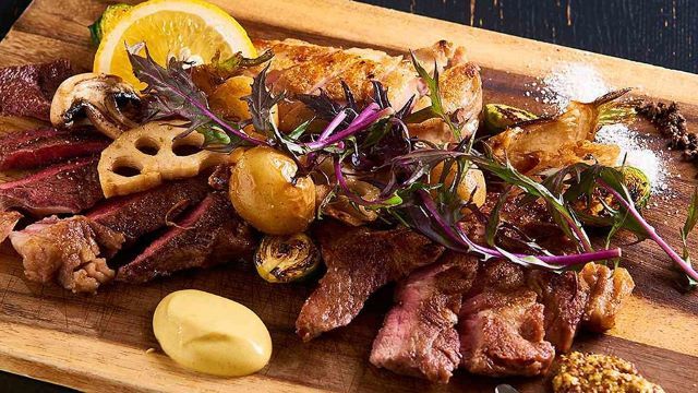 レアが鮮やかに際立つ、本日厳選肉のステーキ。こだわりの火入れでお肉の味わいを絶妙に引き立てています。ジューシーな食感と深いコクを感じる味わい。ソムリエセレクトのワインと共に頂きたい逸品です。
