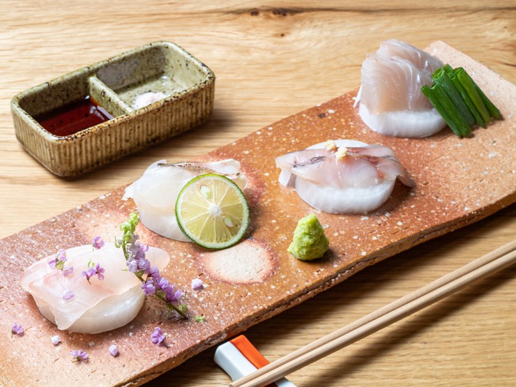 南房総で獲れる鮮度抜群のお刺身。新鮮ならではの食感や旨みを堪能できます。かつらむきの「巻き大根」と一緒にいかが。さっぱりとした味わいは格別です。