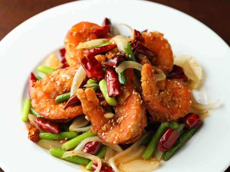 脱皮直後の皮が柔らかく、頭からしっぽまで丸ごと食べられる海老を使用した『ソフトシェルシュリンプの香味揚げ』。本場中国から取り寄せたという山椒油が使われており、さっぱりとした風味に仕上がっています。