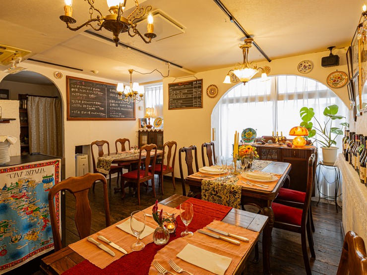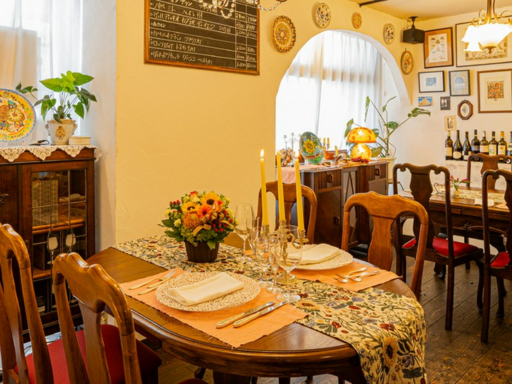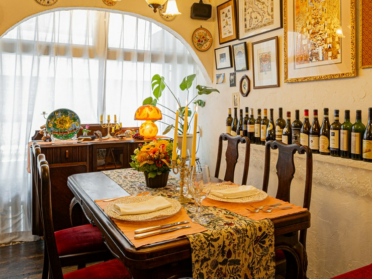 季節の彩りを一皿に表現した前菜盛り合わせから、コース料理が始まる【クッチーナ イタリアーナ ヨシノ】。食前酒から始まり、続いてワインと料理をマリアージュすることで、ゆったりとした時間を過ごせます。この極上の空間を楽しむためには、予約がオススメ。予約の際には、苦手な食材や目的などがあれば気軽に伝えてください。席数は、4名席が2卓と2名席が1卓のみ。この限られた席数は、吉野氏が納得できる料理と心地よいサービスを一人で提供できる最大限の席数となっています。そのため、予約が優先です。上品で温かみのある店内は、デートや記念日など特別な日に最適。和やかな雰囲気の中に、食事を楽しむ空間が縁取られています。