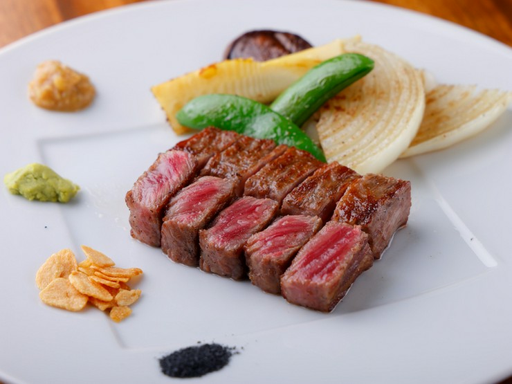 毎月旬の食材を使い、フレンチとイタリアンの技法を融合した料理を提供してくれます。肉は全国から厳選されたA4ランク以上の黒毛和牛や神戸牛を用意。銘柄や部位ごとに異なるおいしさを堪能することができます。