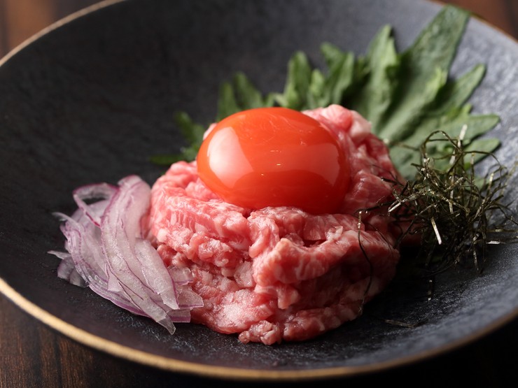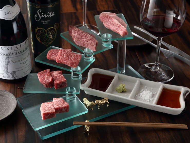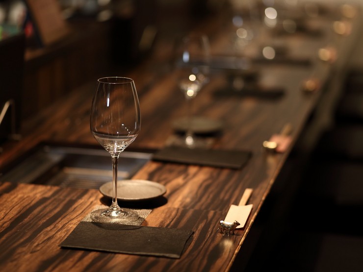オーナーシェフ酒井氏が扱う牛肉は「神戸ビーフ」のみ。「神戸ビーフ」とは、但馬牛の中からさらに厳格な基準をクリアした最上級の牛肉に得られる称号。タンも「黒タン」のみを扱う、調味料も無添加にこだわるなど、肉の魅力を引き出すために考えられる努力を惜しみません。同氏はソムリエも取得しているため、ペアリングもオススメ。自らの舌で銘柄を決め、熟成ワインも仕入れています。カウンター8席とテーブル1卓、全12席という限定された席数は全ての人に目が行き届くようにという配慮から。細やかにゲストをもてなす姿は、2019年3月に開業したばかりの【梅田 お初天神 大人の神戸牛焼肉】ですが、既に多くのファンを惹きつけてやみません。