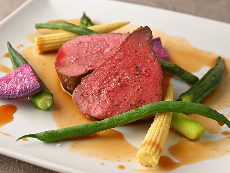 脂が少ない赤身肉ですが柔らかく、味わいに深みがありジューシーな「熊本あか牛」。絶妙な火入れのローストで、素材の魅力を存分に味わってください。300gサイズもあります。