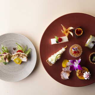 赤銅色の一皿に彩られたスイーツの数々と共にニッコースタイル名古屋オリジナルのブレンドコーヒーやロンネフェルトの香り豊かな紅茶とお楽しみください。