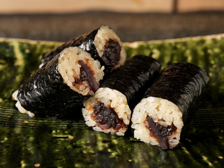 かんぴょうを6時間以上じっくり煮含めることで、甘辛い煮汁が繊維の一本一本にまで染み渡ります。しっかり味が染み込んだかんぴょうと、さっぱりとしたシャリが合わさり、巻物としての存在感を確立。