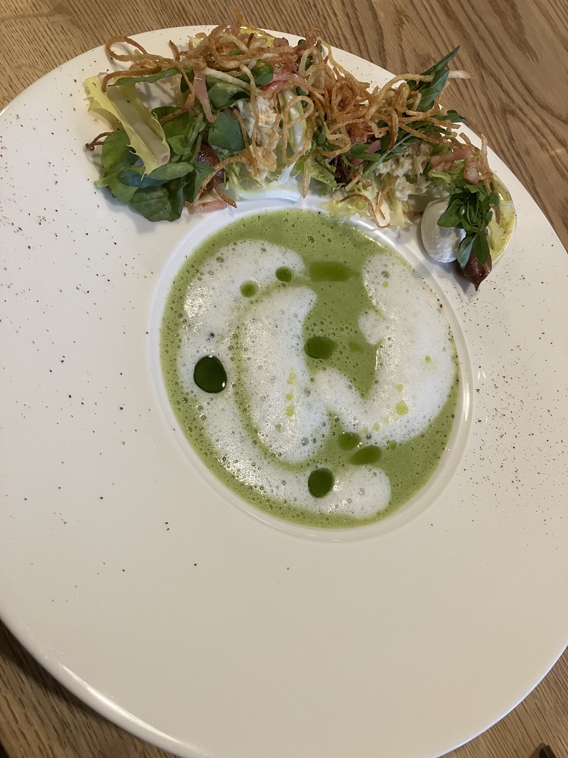 鴨の骨に野菜とお酒を加えて丸一日煮込み、ミキサーにかけて濾し、仕上げにフォンドボーと豚の血を入れて濃度とコクのあるソースに。シンプルにオーブンで焼いた鴨肉とともに、こだわりのソースが味わえる一品。