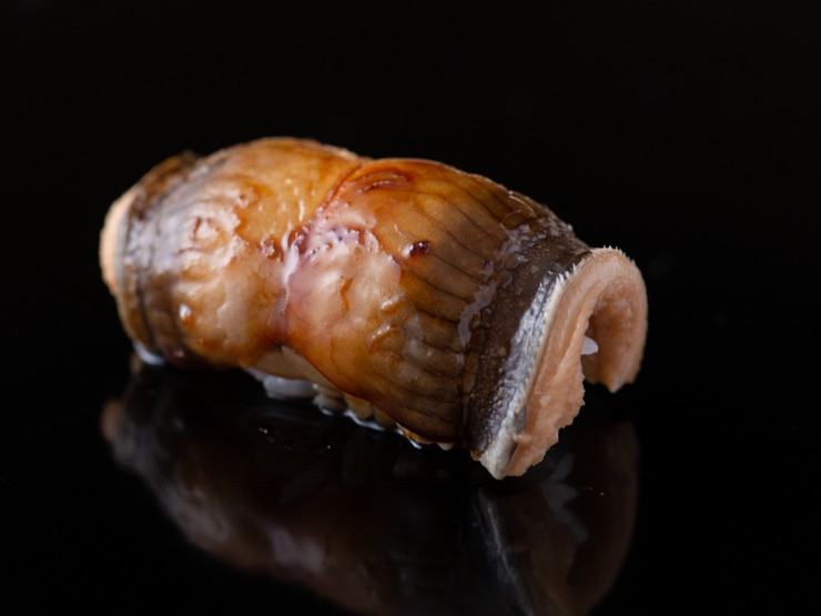 対馬産の穴子を、オープン以来から継ぎ足しながら炊いた煮汁を使って仕上げた逸品。ふんわりとなるように炊いてあり、口の中に入れた瞬間、穴子の旨みが海のように広がります。