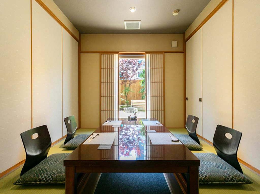 美しい庭を眺めながら、旬の厳選食材を使った四季折々の料理を個室でゆっくり楽しめる