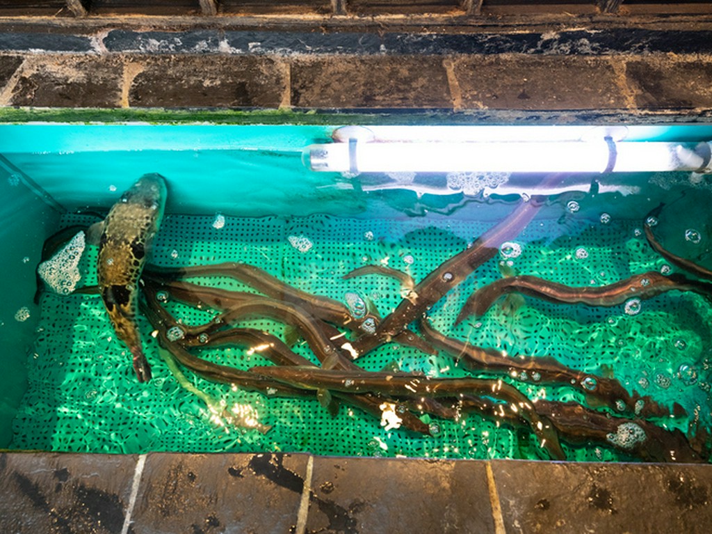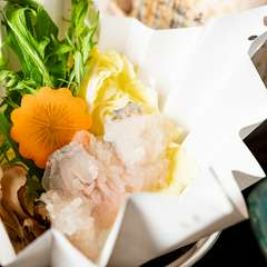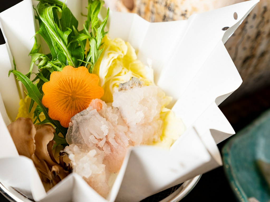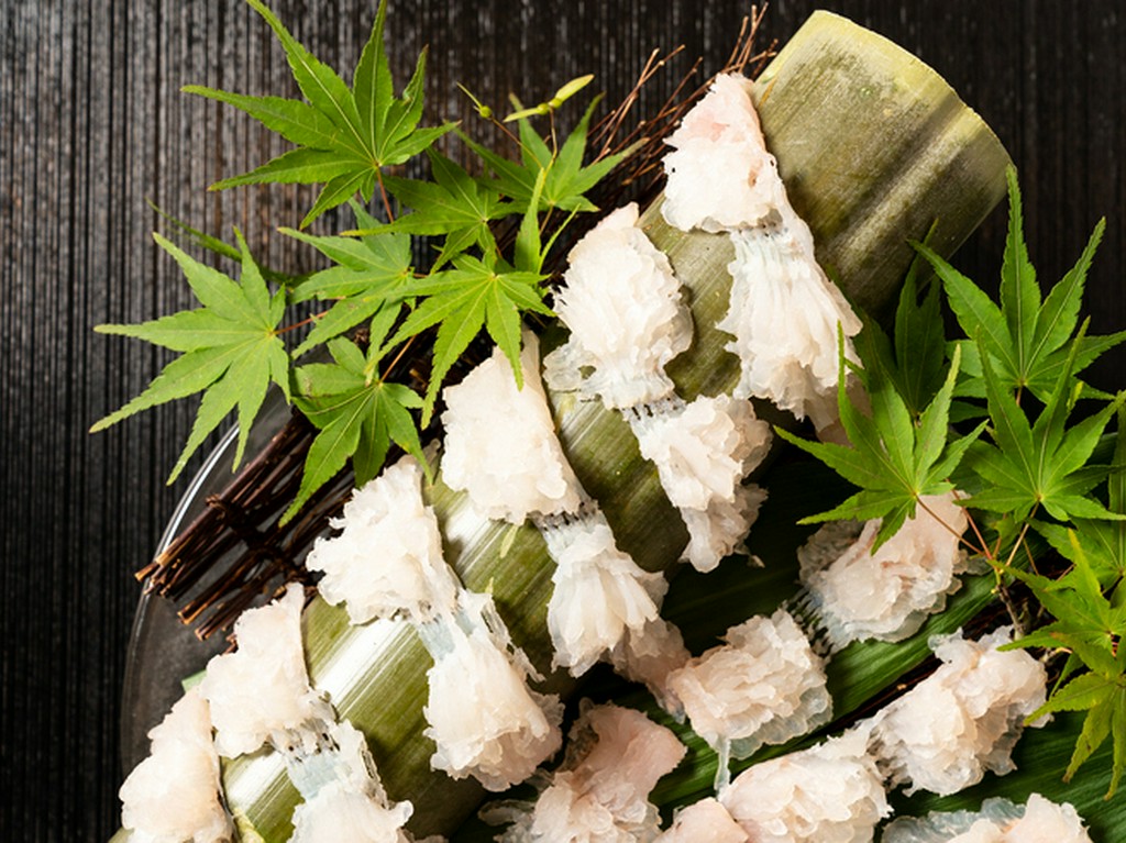 愛媛、徳島、山口、長崎から取り寄せた、大きめサイズの厳選したとらふぐを使った料理と、夏は900g前後の瀬戸内海のはもを使った料理が看板メニューというこちらの店。店主の田畑真幸さんは、多くの職人の技を参考に、ふぐを無駄に傷つけず、よりおいしさを引き出す捌き方を考案。はもも独特の骨切りで、骨が気にならない舌触りとフワッとした食感を実現しています。お酒は日本全国の地酒を始め、料理に合うものが多数揃っています。店内は全席掘りごたつ式で、記念日の会食や接待などの席にぴったりの完全個室も完備。落ち着いた雰囲気の中、仕事帰りの会社員やファミリー、カップルなどさまざまなゲストが、ゆっくり食事を楽しんでいます。