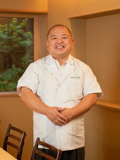 1966年、東京都生まれ。日本料理の世界に魅せられ、茶懐石の名店【和幸】で7年間修業後、フグ料理店で研鑽。1993年頃から出張料理人として活躍。2000年、神楽坂に【懐石小室】を開店する。2018年2月、現在の場所へ移転。季節の食材をふんだんに取り入れた、山や海、里山の風景を感じられる和の料理が幅広い支持を得ている。遠州流茶道の家元付き料理人も務めている。