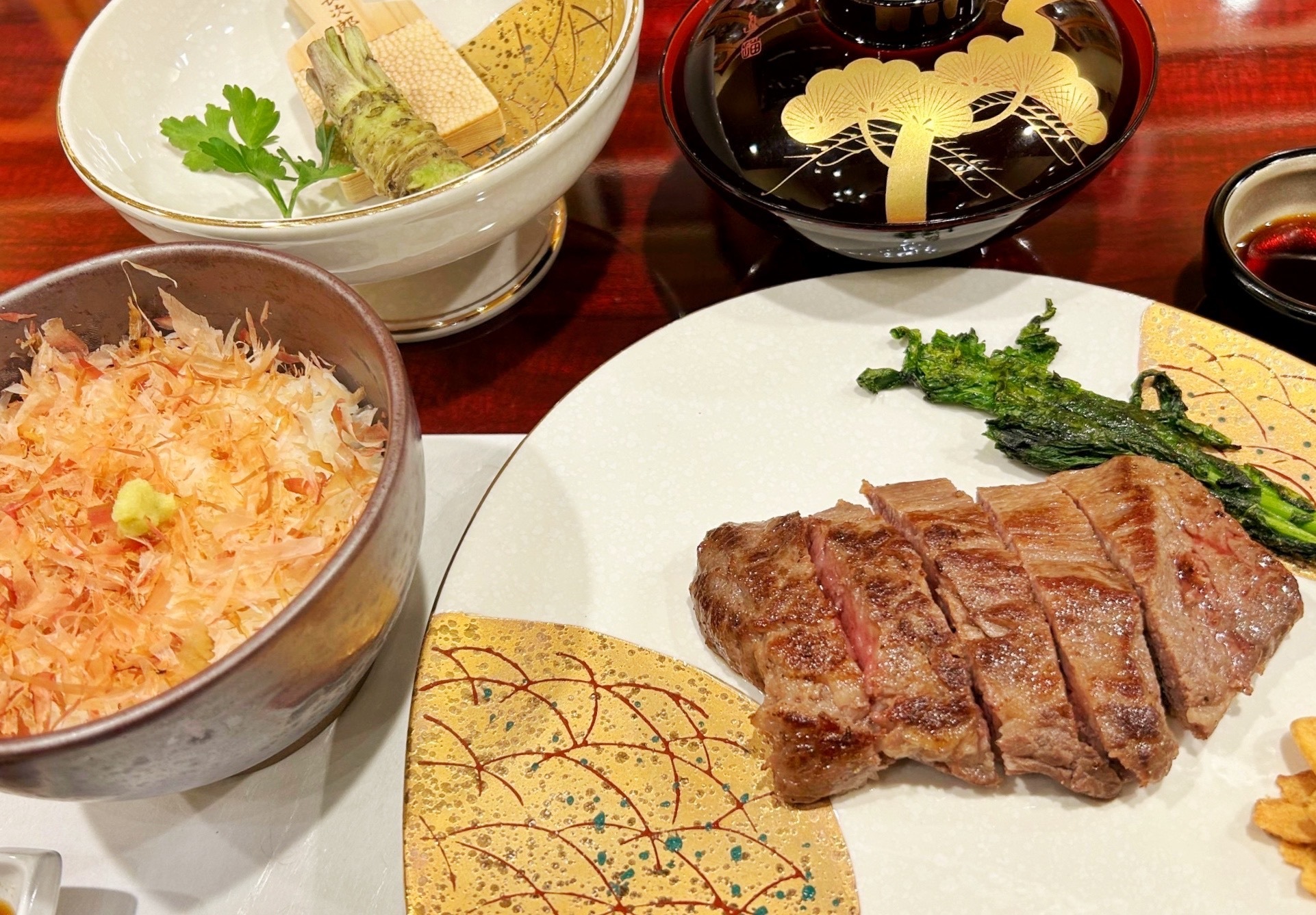 伊豆わさびで食べる地元牛ステーキとわさび丼セット