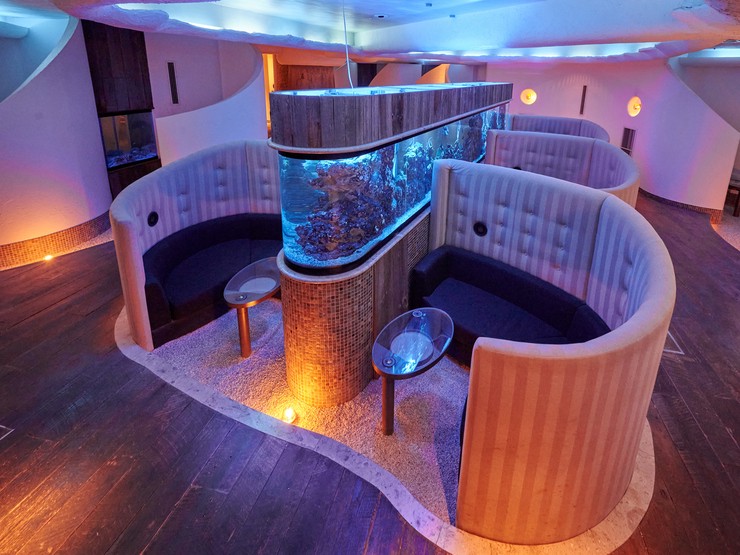 青い照明が幻想的なアクアリウムゾーンをはじめ、3つのゾーンで非日常を満喫