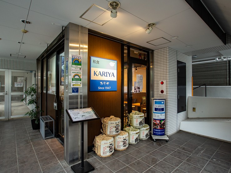 店舗は北斎通り沿いですが、ビルの半地下にあるため隠れ家的な【KARIYA】。メニューは基本的に、日々変わります。それは、料理人が直接豊洲市場を訪れ、信頼できる仲卸業者より買い付けた食材で決定するから。夜にはセットメニューが用意され、一人呑みにも最適。デートや友人同士、家族や仕事仲間など2名以上であればコースを使い、宴会で盛り上がるのもオススメです。和食と相性の良いお酒にこだわり、日本三大酒処の中から「灘」と「西条」の日本酒を仕入れています。純米酒や吟醸酒など、同一の日本酒で名称を変えつつ飲むのもまた楽しい。普段の食事にも使い、記念日や各種宴会にも利用したい、地域の人から愛される和食料理店です。