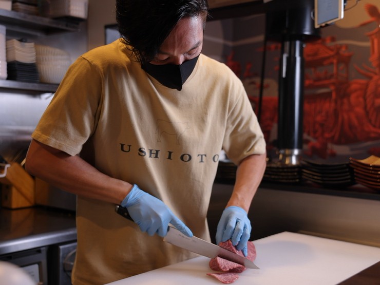 1981年、東京都生まれ。自身の将来について考えた時、焼肉を極めていきたいという思いに至り、27歳から池袋の有名な焼肉店【黒5】で修業を始める。その後も開業を見据えて数々の名店で経験を積む。最後の修業の場となった【味道苑】でゲストに喜ばれる味、パフォーマンス、おもてなしを学び、独立。2020年12月に【うしおと】を開業し、オーナーとなる。