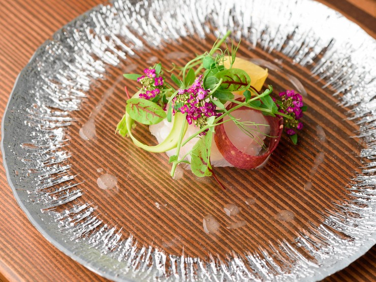 北陸産の鮮魚と地元産の野菜をつかった一皿。シンプルだからこそ、素材のおいしさがわかる逸品です。※コース料理の一品となります。季節や仕入れ状況で内容は変更となります。