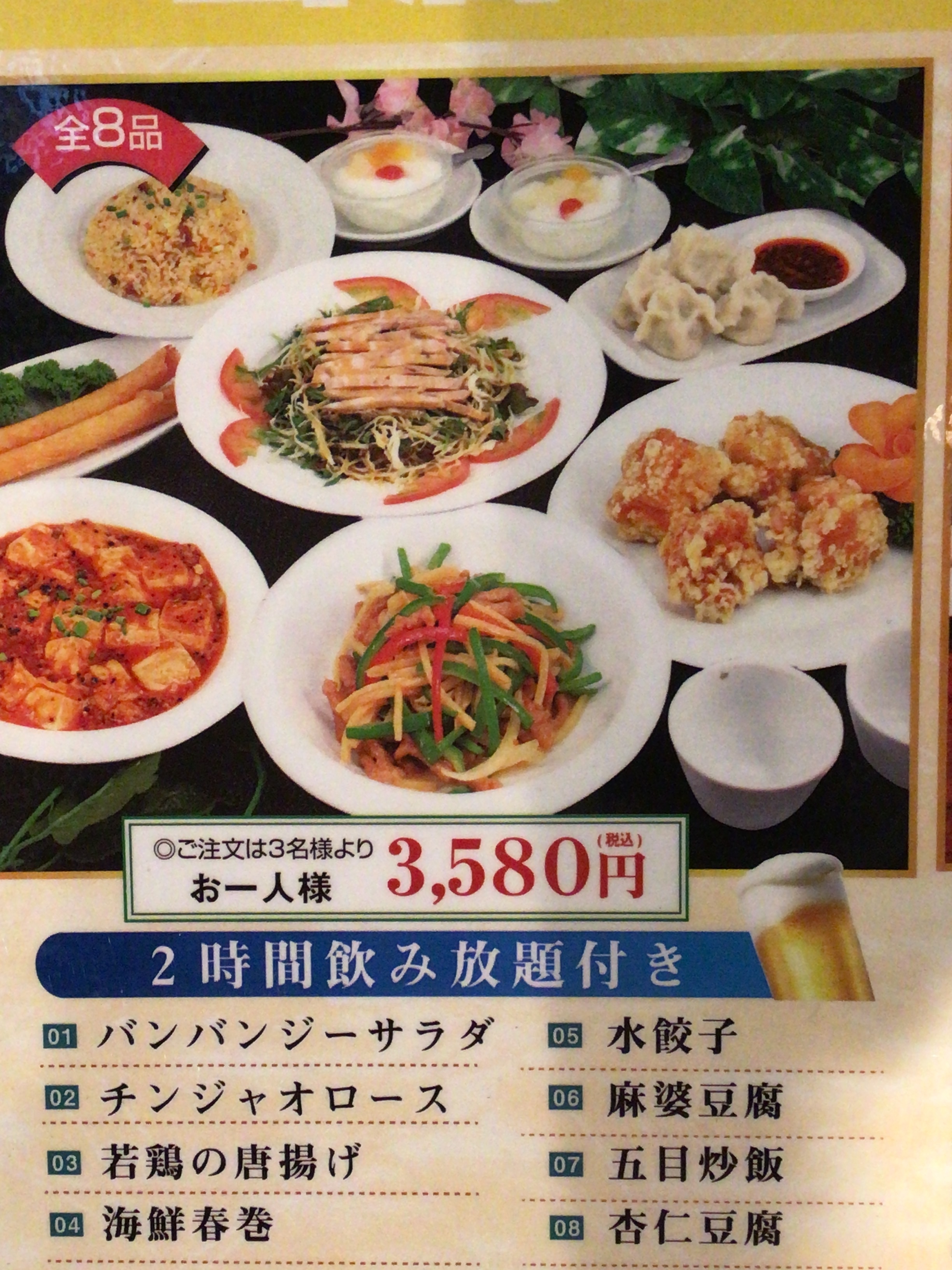 <宴会人気>宴会向け全8品2時間飲み放題コース3580(税込)