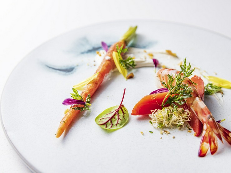 食材の中心となっているのが、京都の地物。堀川ごぼう・聖護院かぶ・九条ねぎなど季節の京野菜をふんだんに取り入れ、仏産の仔羊やオマールエビなど和と洋の融合を表現しています。