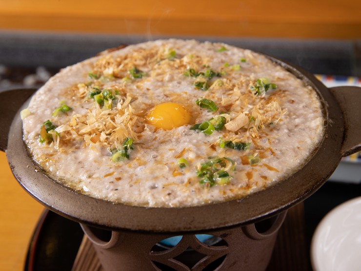 山菜の王者とも呼ばれている自然薯は栄養価も高く、特に女性に人気の食材です。すりおろした自然薯を、ステーキのように目の前で焼き上げる逸品。風味と旨みを堪能あれ。