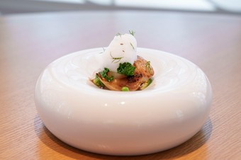 Premiere Entree 桜をイメージした県産鮮魚の瞬間スモークとカブのババロワ