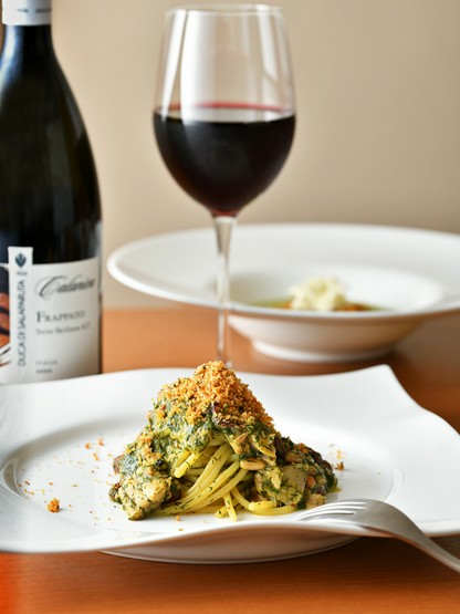 当時フェレンツェに在住していたシェフが、シチリアではじめてこのパスタを食べたときに衝撃を受け、「このお店で働かせてほしい」と頼み込んだという、シェフに大きな影響を与えた思い入れ深い逸品です。