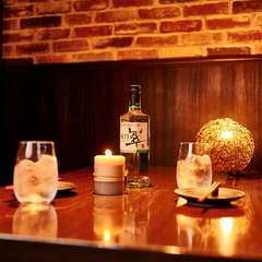 間接照明でムードある大人の時間を演出。レンガ・木・雑貨を用いて、流行りのブルックリンスタイルをモダンな和の雰囲気と融合させたおしゃれな空間は来る人を魅了します。