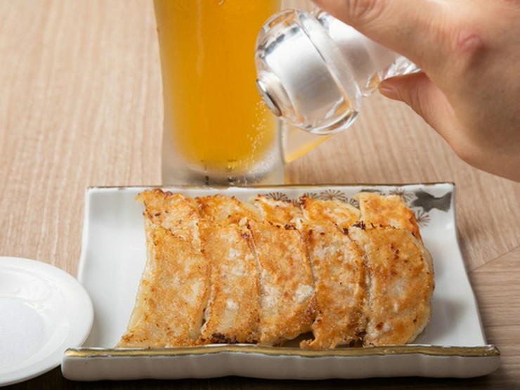 「一度食べたら抜け出せない、魅惑の塩餃子」は皮から手作りで、ぱりっとしていながらももちもちとした食感です。