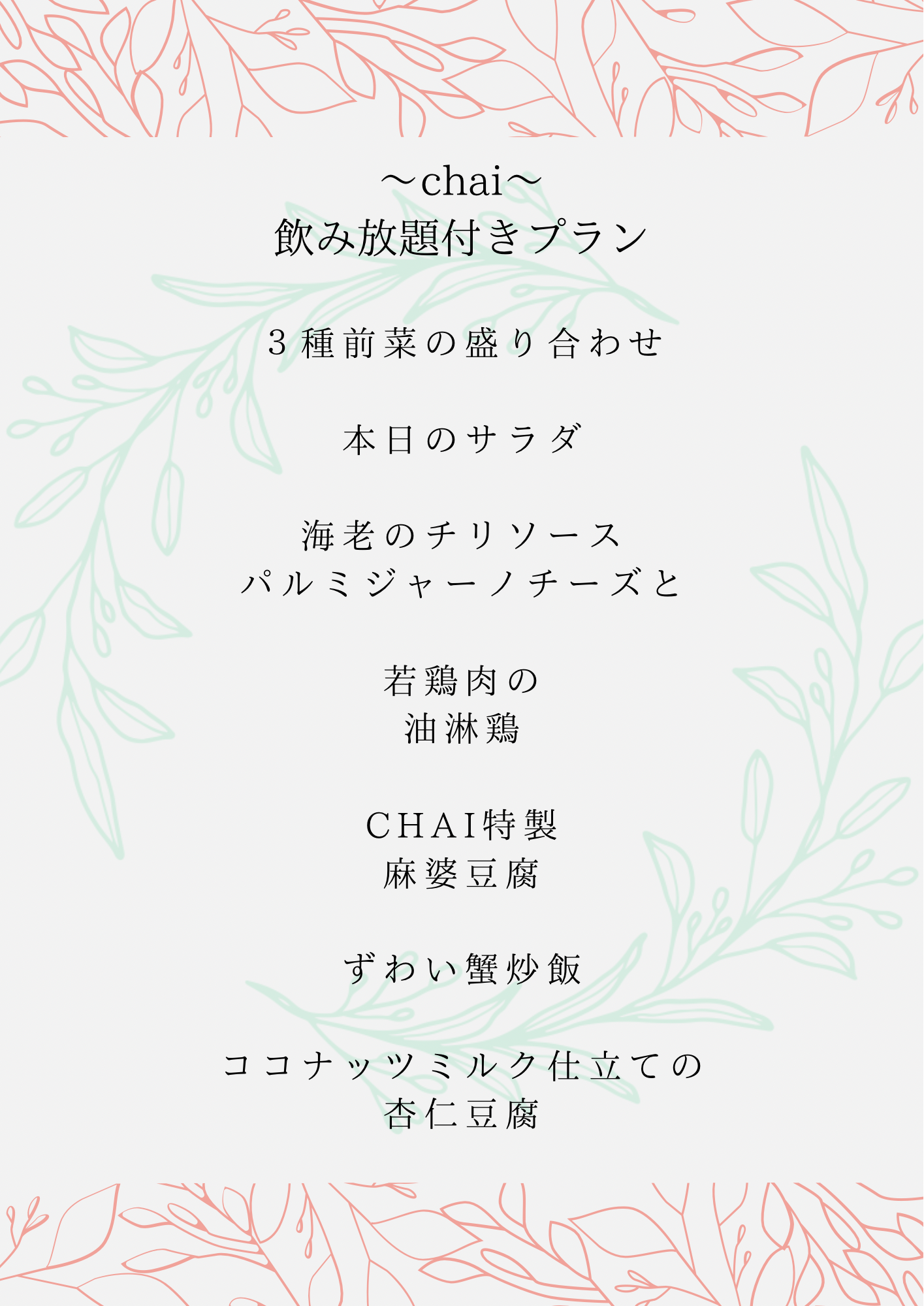 飲み放題付き、カジュアルコース!