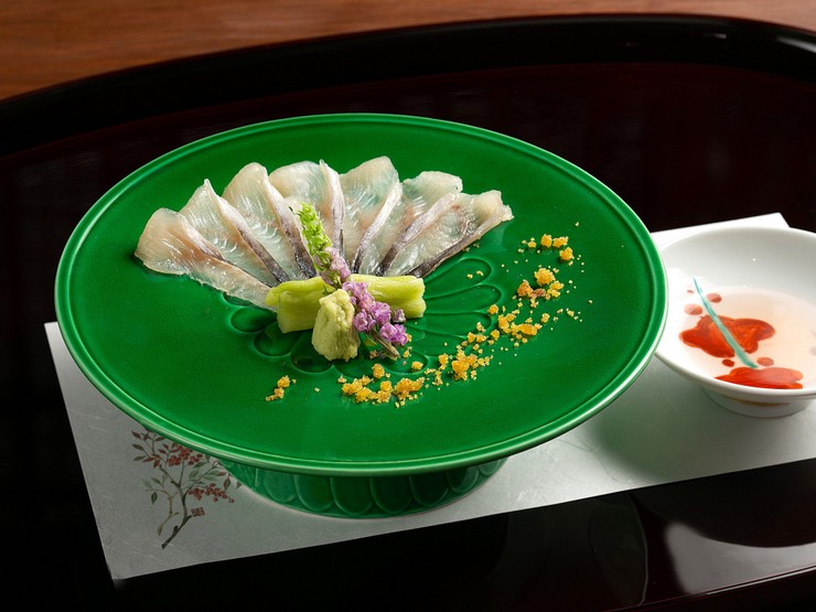 手間暇かけ、美しく仕上げられた一皿。鰻は一日程昆布締めにして寝かせることで、旨味をグッと引き出します。煎り酒を使い、豊かな風味を堪能。