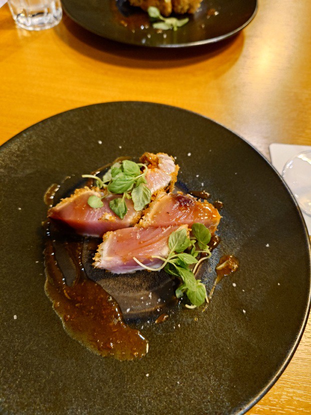 さまざまな季節の素材を楽しめる『本日のレアカツ』。刺身でいただけるほどの新鮮な旬の魚を、サクッと揚げた贅沢な逸品です。1,000円~1,500円(食材によって変動します)