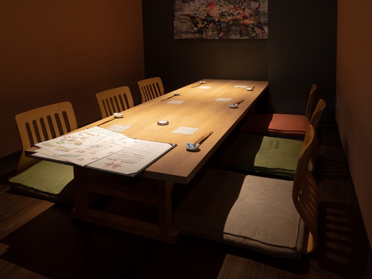 | 席数形態 | 2~6名用の完全個室1部屋、2~4名用のテーブル半個室2つ、1~6名用のテーブル席1つ、カウンター席5つ |